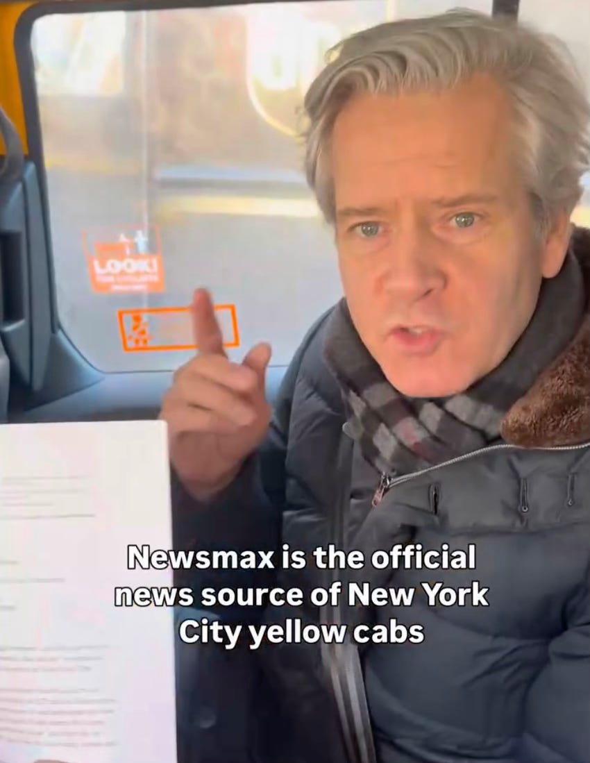 INSTAGRAM: I so appreciate Manhattan Borough President Brad Hoylman for pointing out that somehow, Yellow Cab has made Newsmax the official channel that all its drivers are forced to watch in the back of NYC cabs. And for doing something about it.