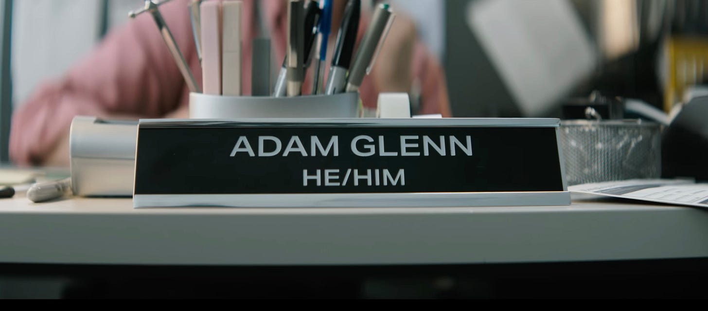 It also contains a clever joke, as his alter ego has a “He/Him” deskplate. Get it? He’s He-Man. And yet the internet is taking this to mean the movie will be woke.