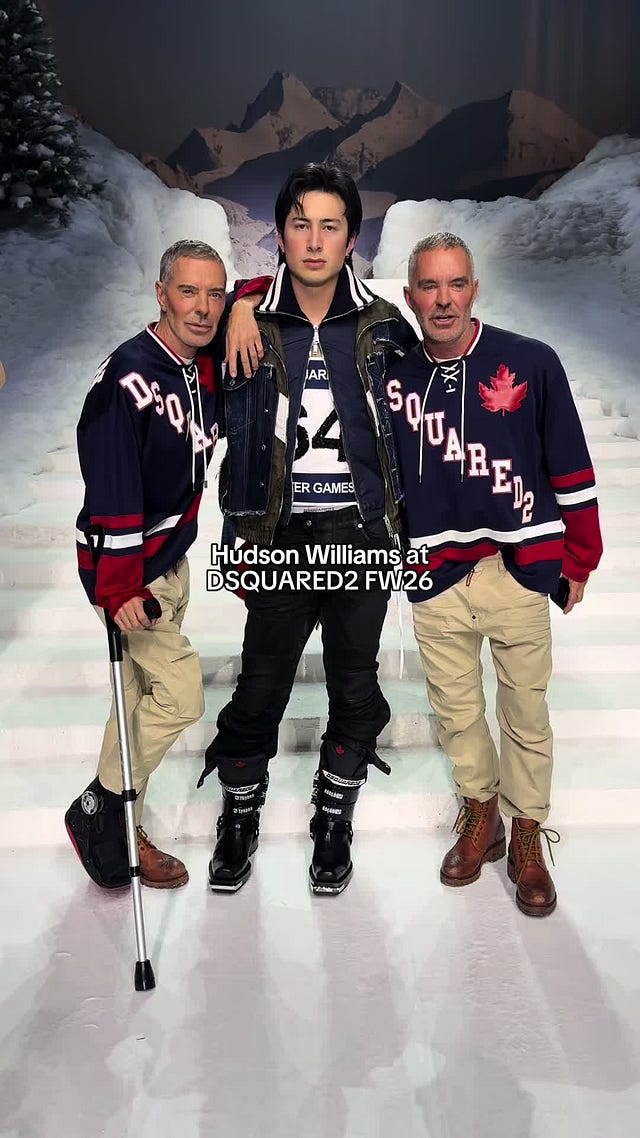 TIKTOK: Heated Rivalry stud Hudson Williams walked in the DSquared2 show. The video with the designers is mildly terrifying.