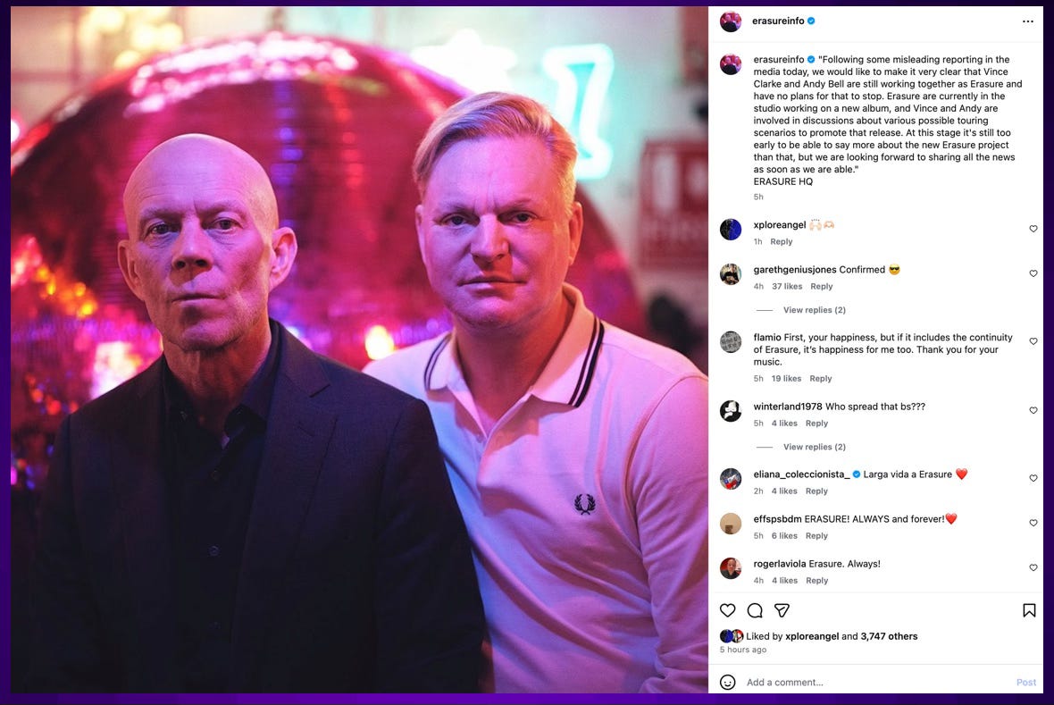 INSTAGRAM: No, Erasure is NOT breaking up:
