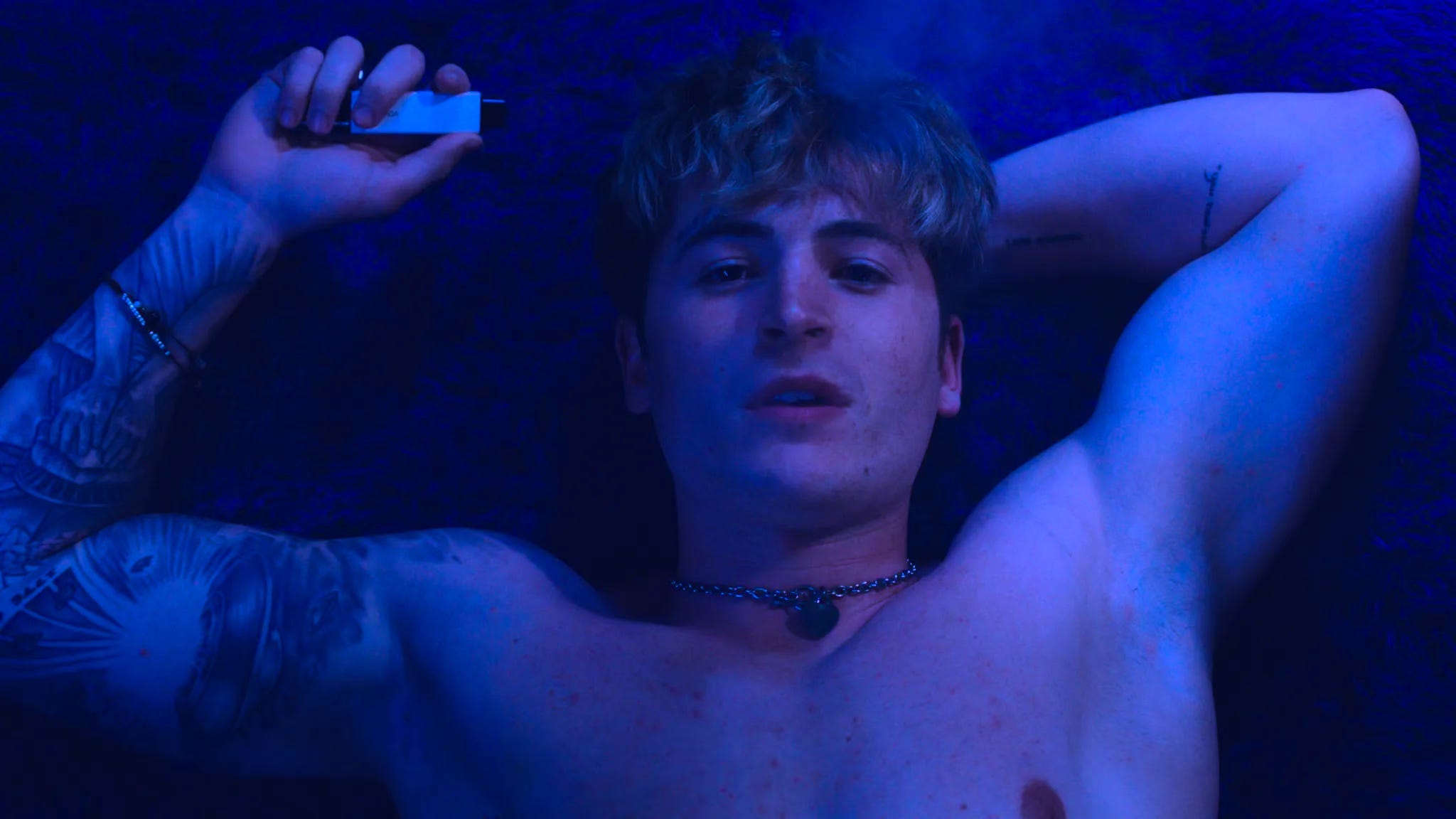 The night before, I’d met a fellow festgoer who’d turned me on to one of the film’s stars, Boots baddie Kieron Moore. On his recommendation, I’d decided to catch Blue Film, which had been described to me as a controversial movie about a dominant fetish cam boy. Sold!